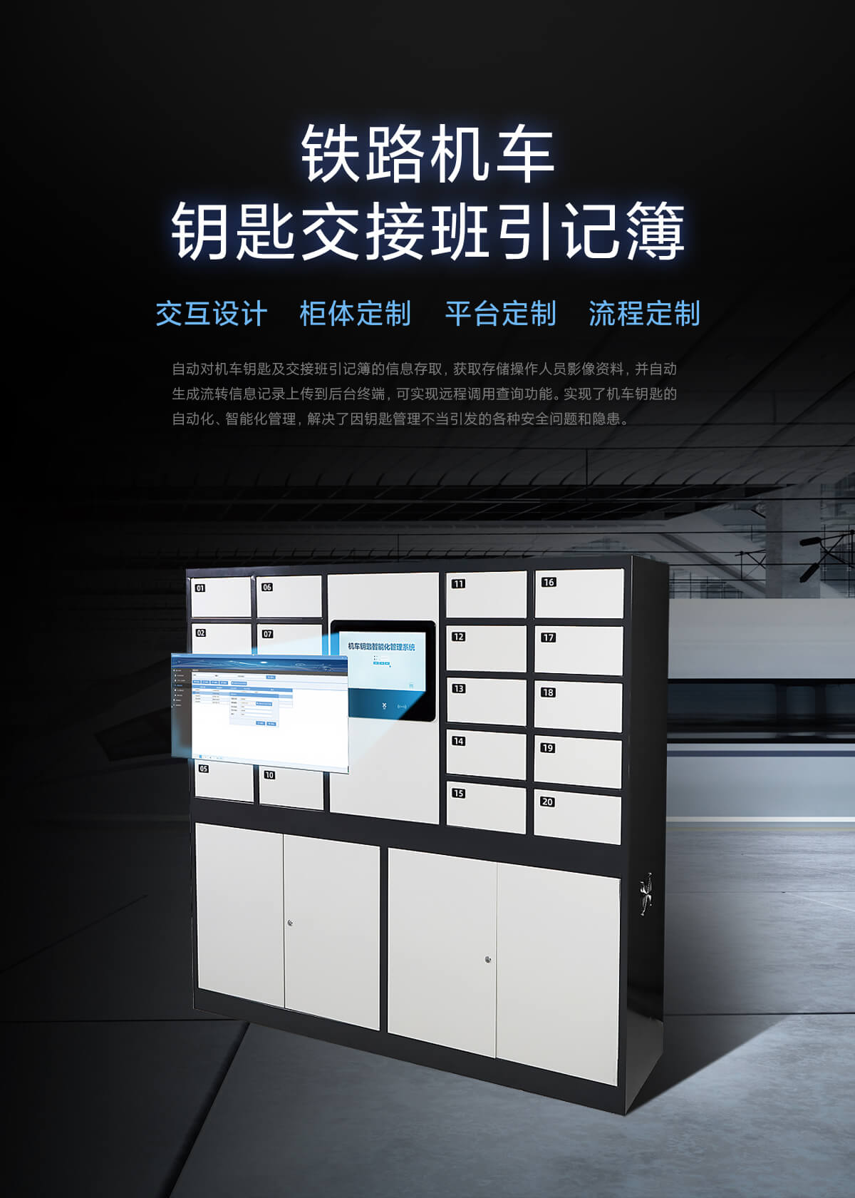 自動對機車鑰匙及交接班引記簿的信息存取,獲取存儲操作人員影像資料,并自動生成流轉信息記錄上傳到后臺終端,可實現遠程調用查詢功能。實現了機車鑰匙的自動化、智能化管理,解決了因鑰匙管理不當引發的各種安全問題和隱患。