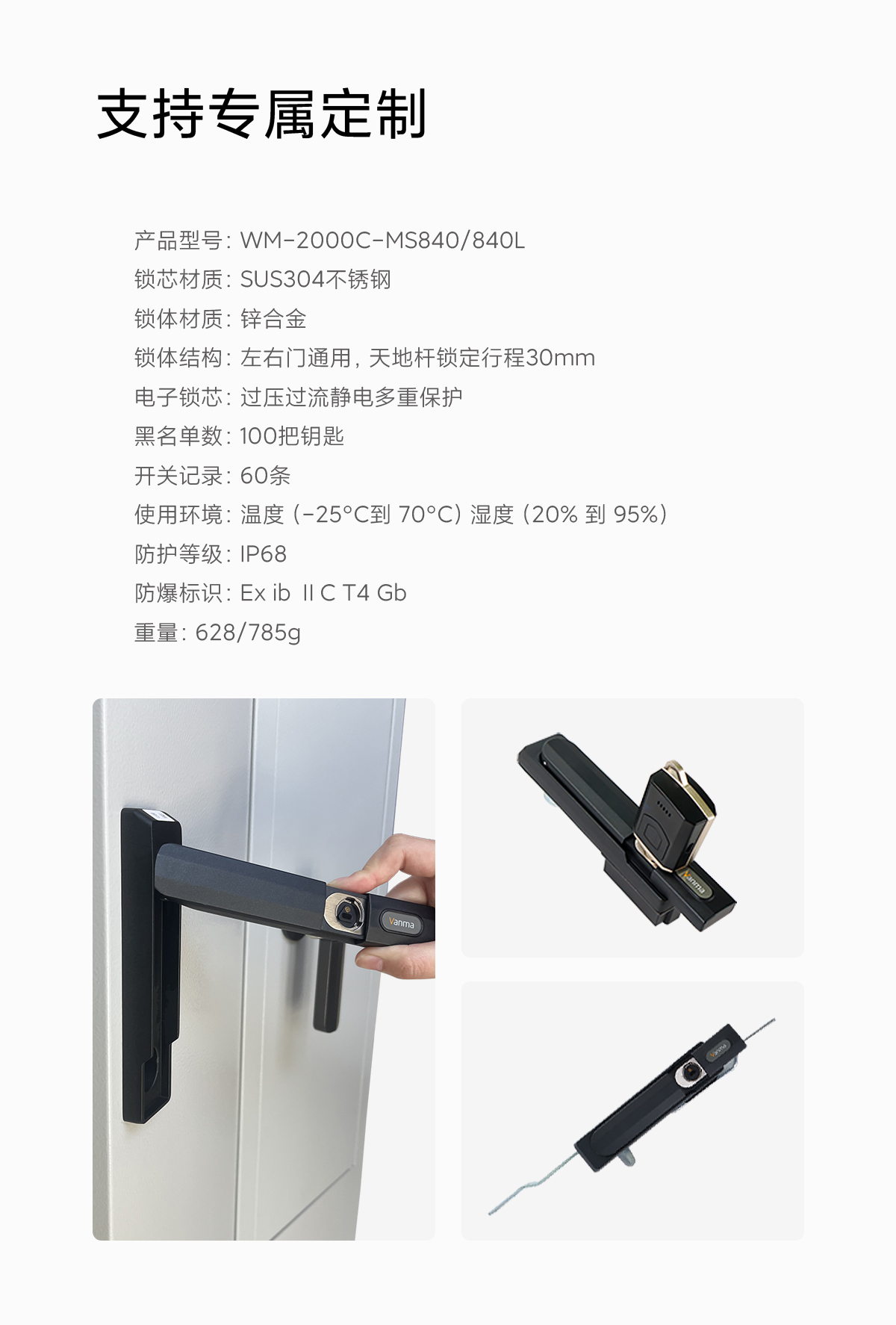 鎖體結構:左右門通用,天地桿鎖定行程30mm