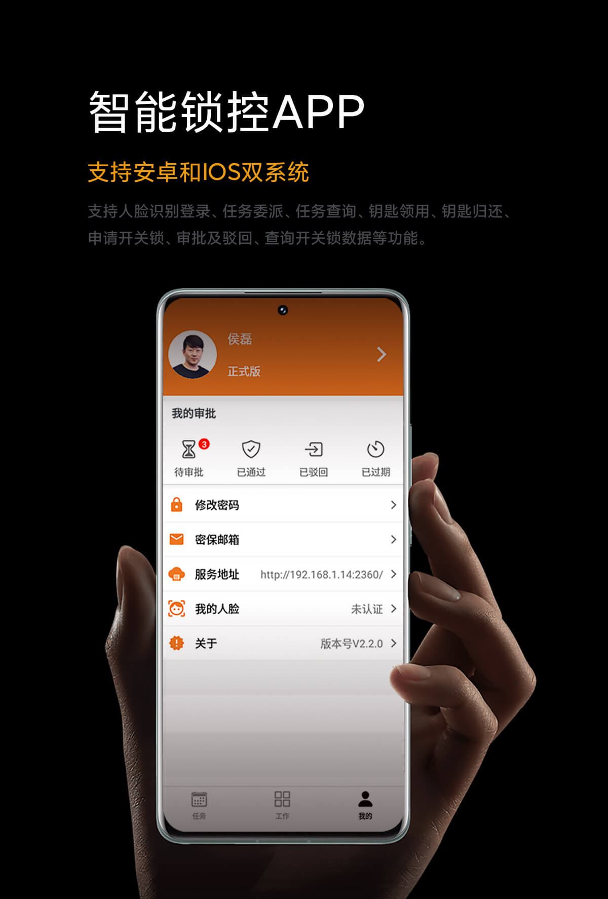 支持人臉識別登錄、任務委派、任務查詢、鑰匙領用、鑰匙歸還、