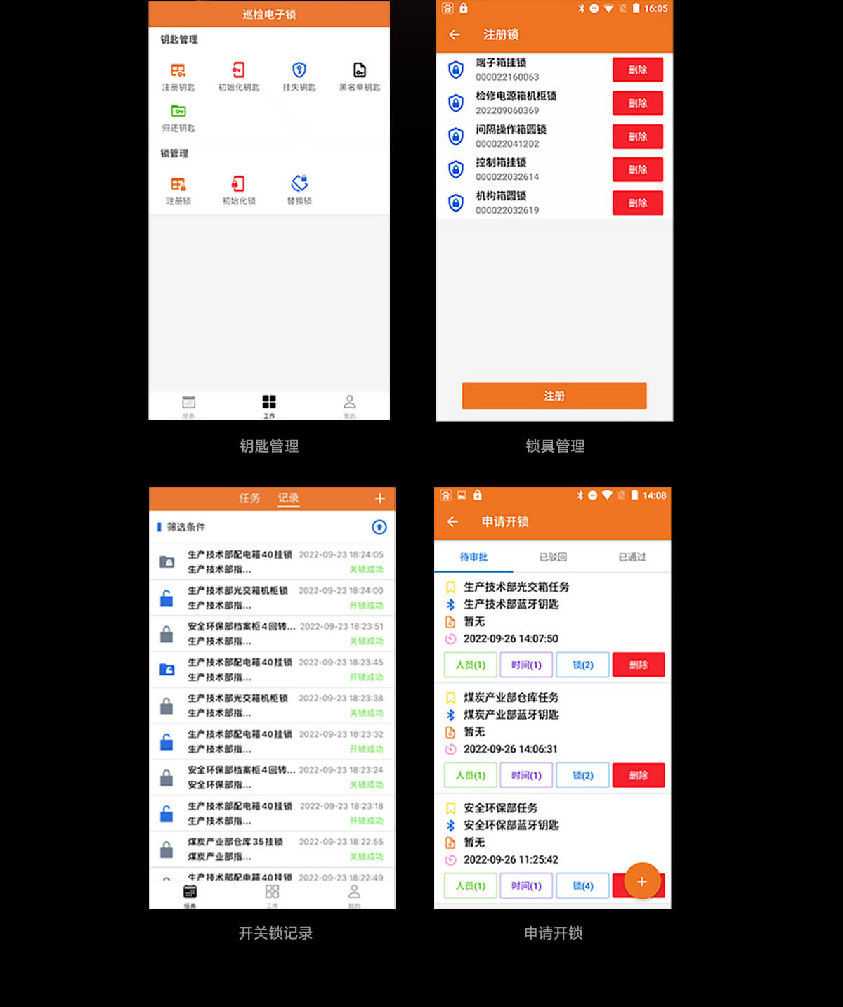 申請開關鎖、審批及駁回、查詢開關鎖數據等功能。