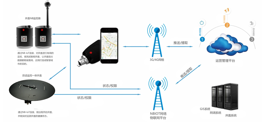 智能井蓋擁有唯一的RFID身份標(biāo)識(shí),采用NBIOT網(wǎng)絡(luò)將信息采集統(tǒng)一監(jiān)控,結(jié)合專利技術(shù)的物聯(lián)鎖,實(shí)現(xiàn)城市井蓋資源的監(jiān)控防盜可視化。