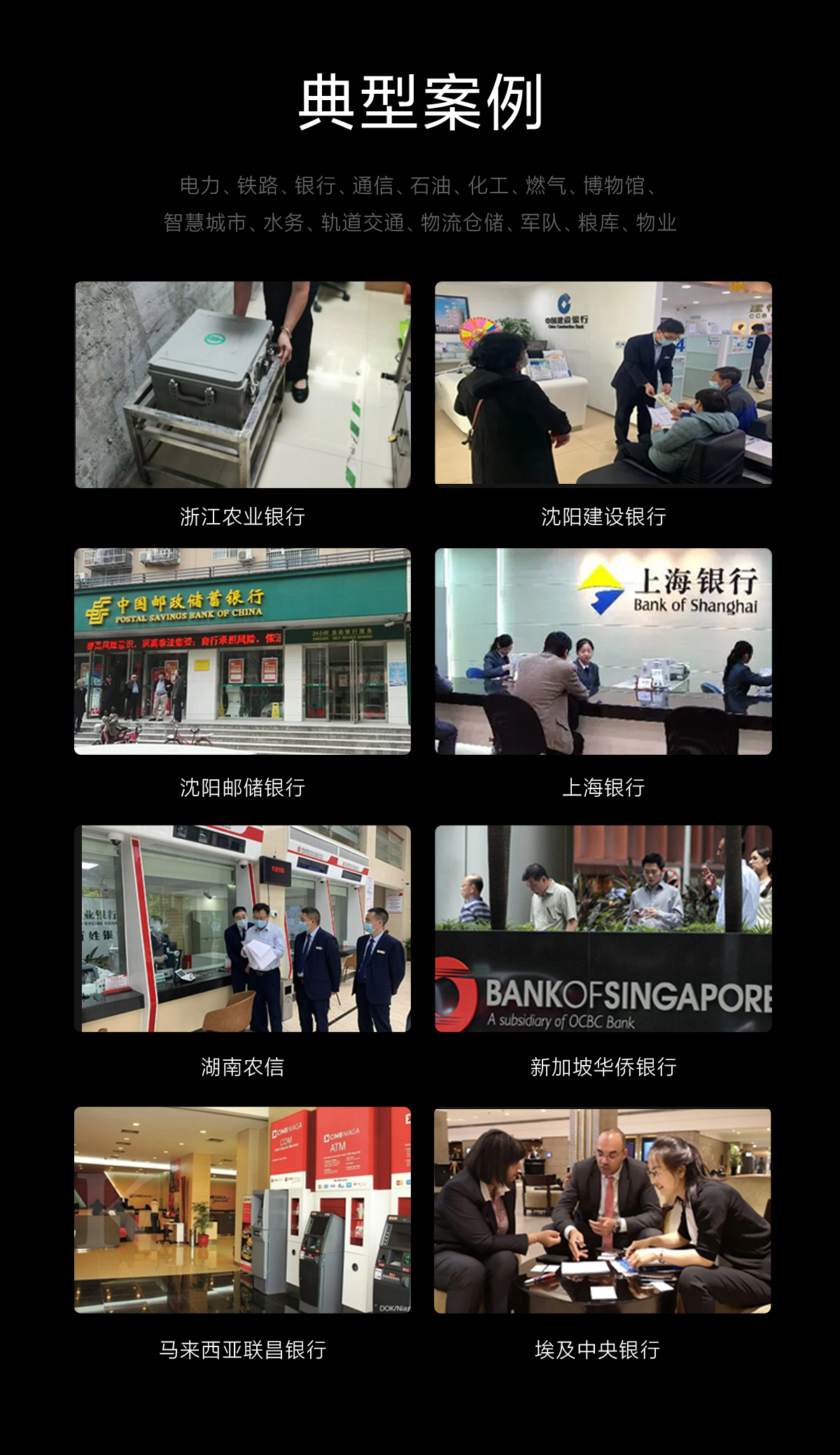 電力、鐵路、銀行、通信、石油、化工、燃氣、博物館、 智慧城市、水務、軌道交通、物流倉儲、軍隊、糧庫、物業