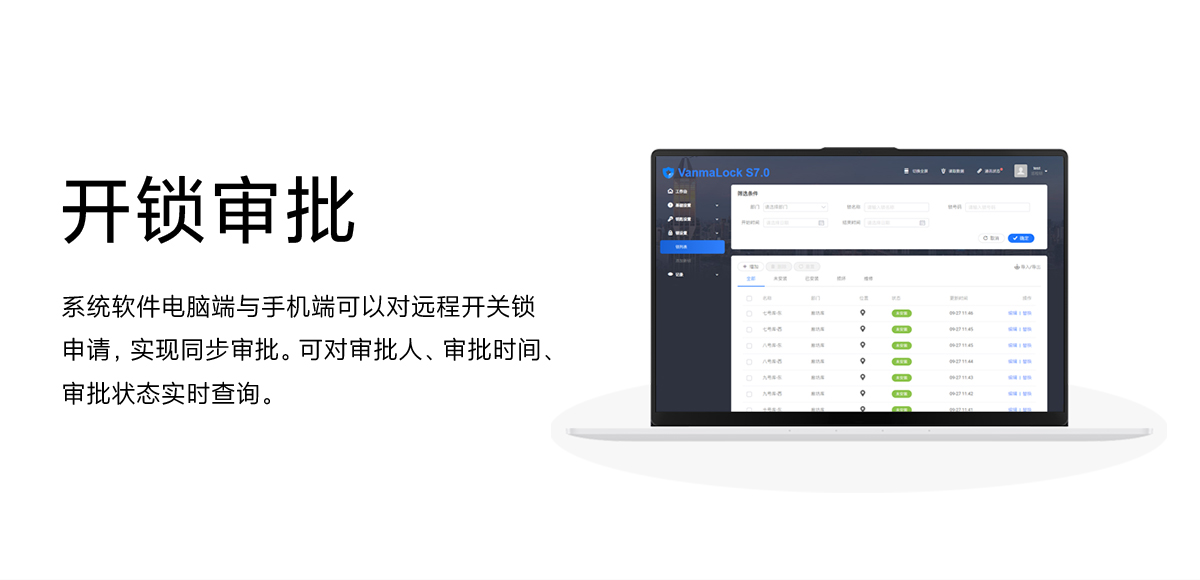 申請開關鎖、審批及駁回、查詢開關鎖數據等功能。