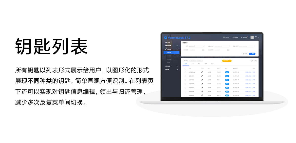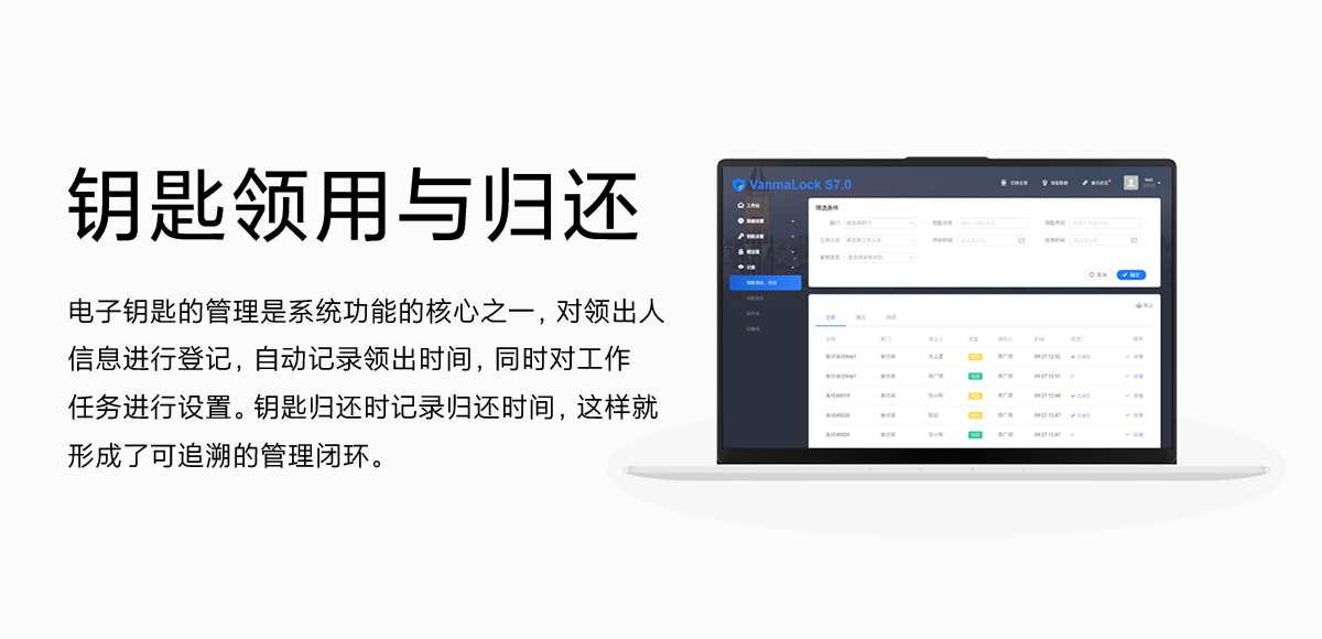 支持人臉識別登錄、任務委派、任務查詢、鑰匙領用、鑰匙歸還、