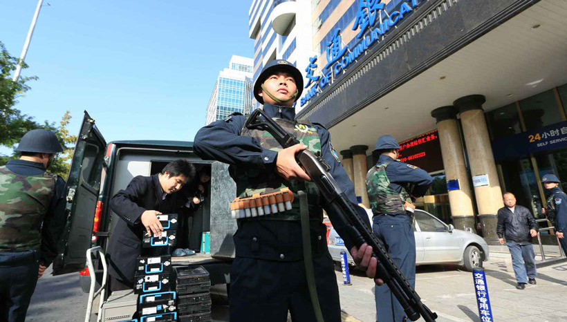 4. 營業終了,柜員和主管一起鎖箱并交接給押運人員;