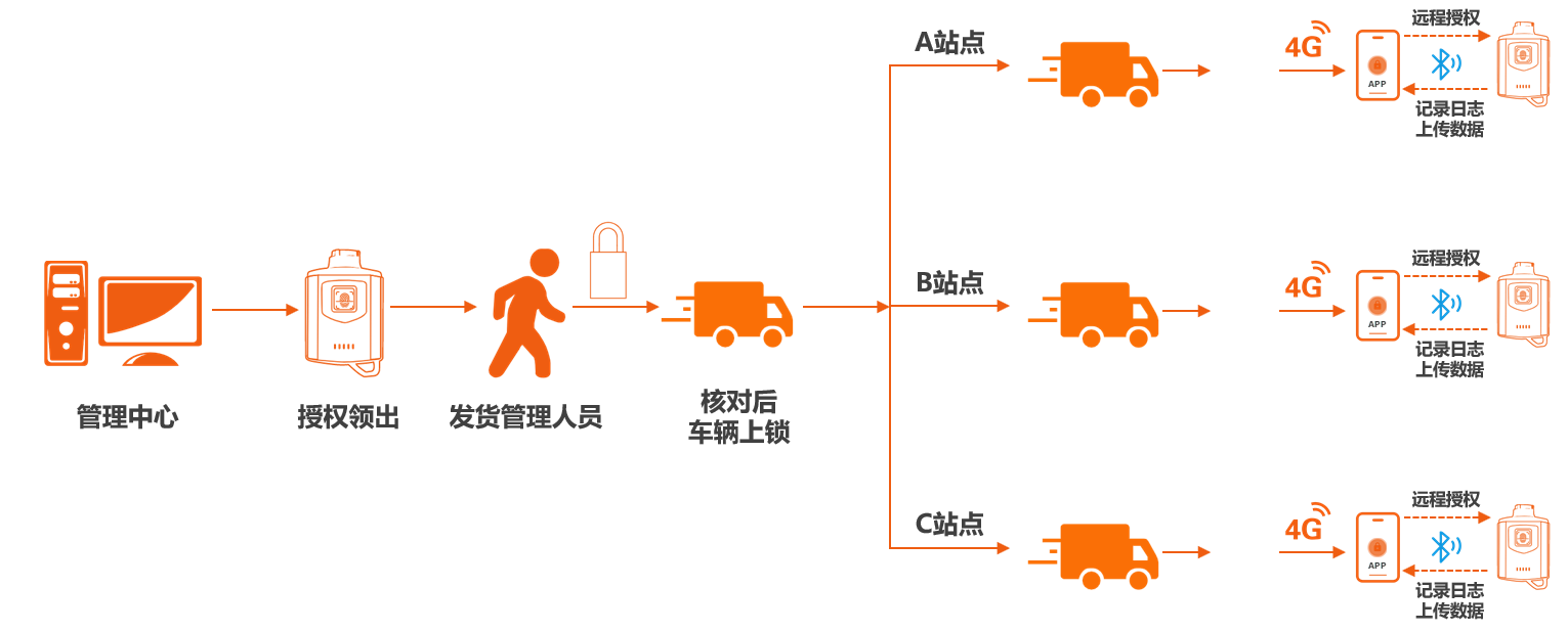 物流行業利用無源電子鎖可實現對廂式貨車、快遞車等的智能管控。管理員可通過智能無源電子鎖系統實現對不同人員發放不同的開鎖權限,如管理員分別指定發貨方、運貨放、收貨方中某一負責人具有開鎖權限。從此告別紙張登記、鑰匙分配等繁瑣流程,手機取代鑰匙,一鍵解鎖開廂門。