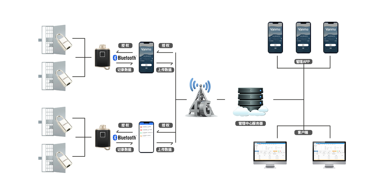 在執(zhí)行關(guān)鎖動(dòng)作時(shí),同樣要先識(shí)別開(kāi)鎖人員身份,識(shí)別成功后方可關(guān)鎖,同時(shí)記錄關(guān)鎖人員和關(guān)鎖時(shí)間,并記錄該人員在這個(gè)區(qū)域內(nèi)的停留時(shí)間。工作結(jié)束后按時(shí)歸還鑰匙,鑰匙數(shù)據(jù)上傳到管理軟件。管理軟件完成對(duì)鎖、鑰匙、人員、時(shí)間、地點(diǎn)、鎖開(kāi)關(guān)狀態(tài)的統(tǒng)一管理。