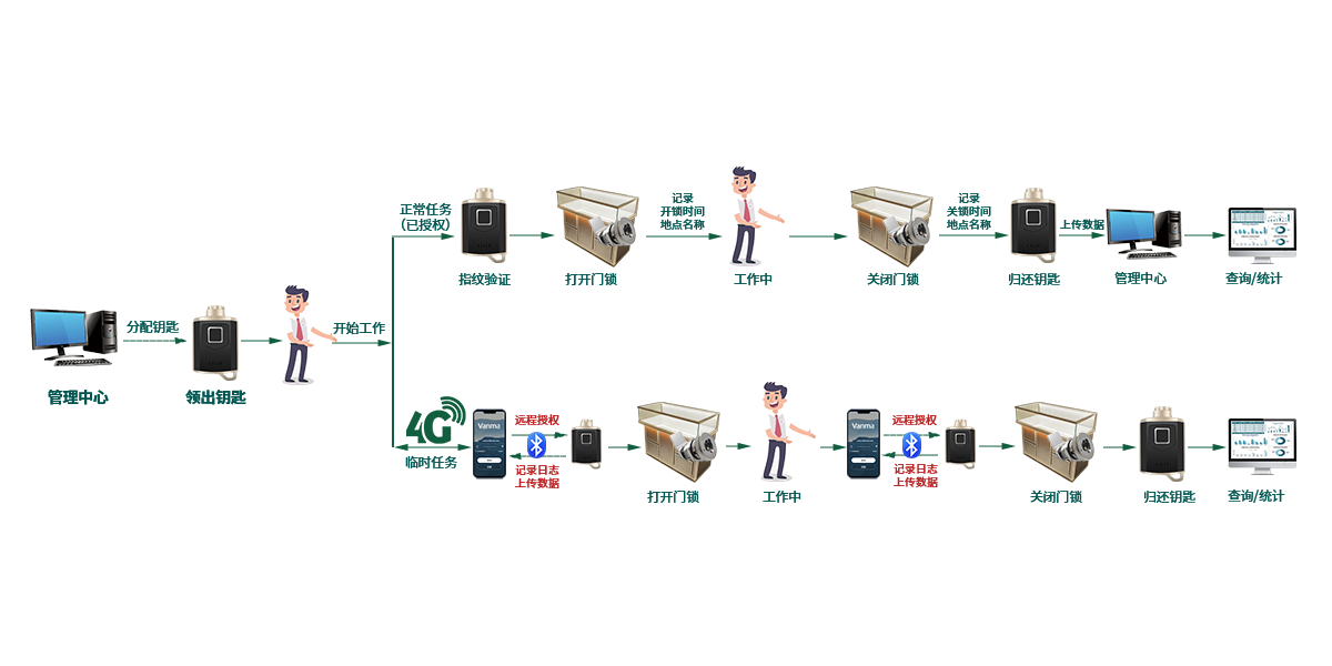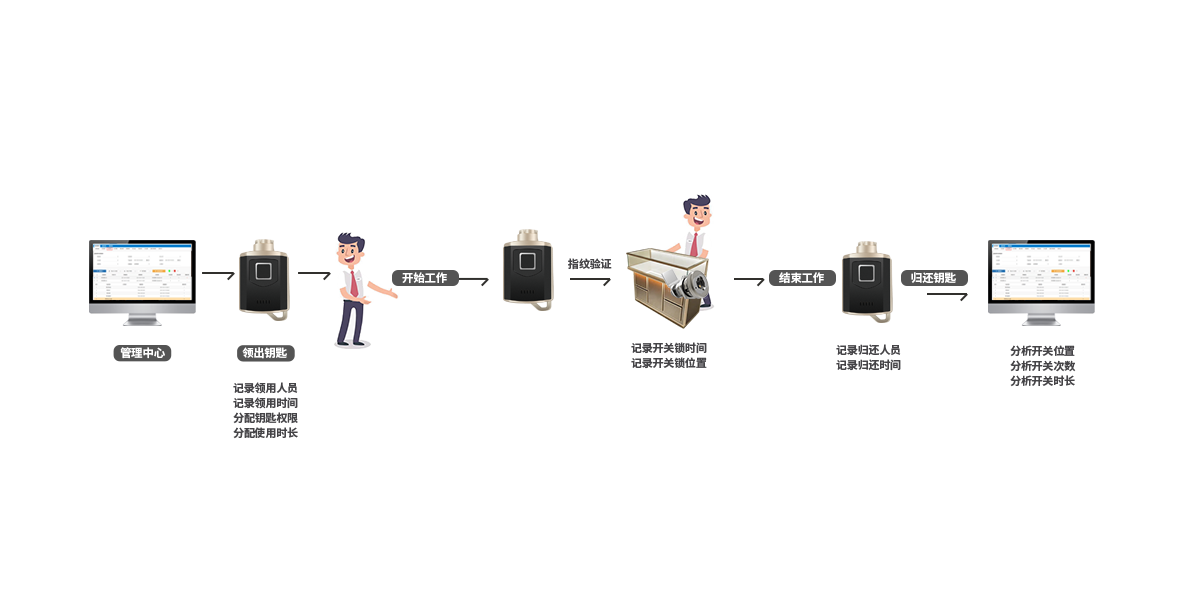 作業過程管理電子鑰匙記錄開關鎖時間,作業過程有據可依。