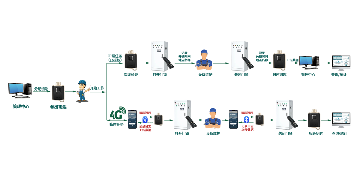作業過程管理電子鑰匙記錄開關鎖時間,作業過程有據可依。