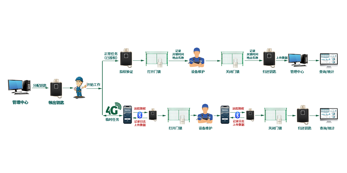 作業過程管理電子鑰匙記錄開關鎖時間,作業過程有據可依。